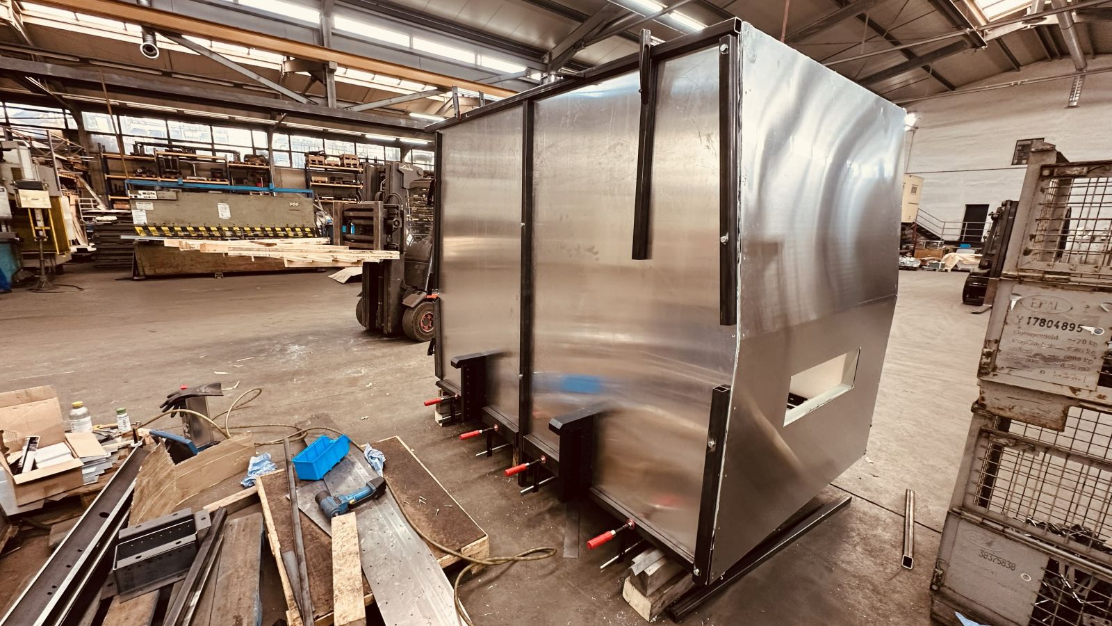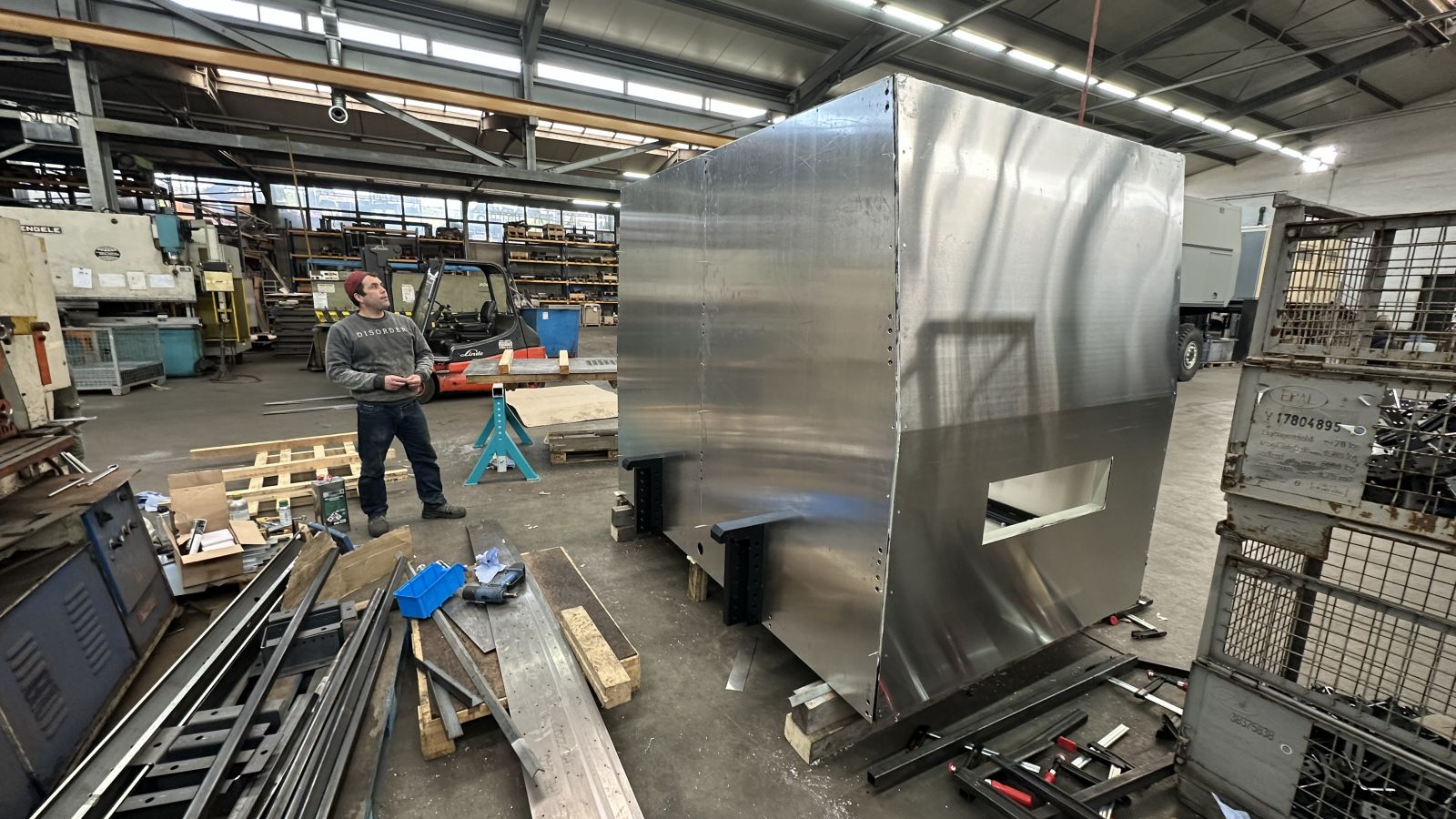 Der Aluminium Boden ist schon montiert, nun kommen die Aluminium Wände an die Reihe