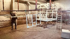 - Dazwischen werden die letzten Arbeiten am Zwischenrahmen erledigt, schweissen des Querträgers bei der Zylinderhalterung unten und Verputzen.