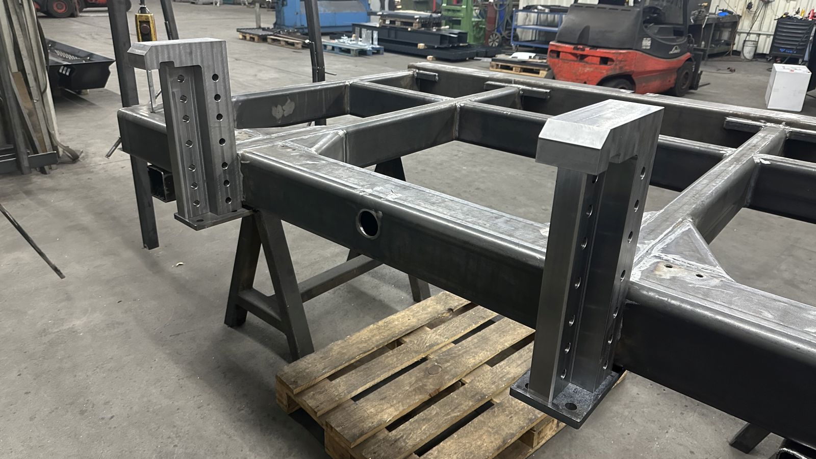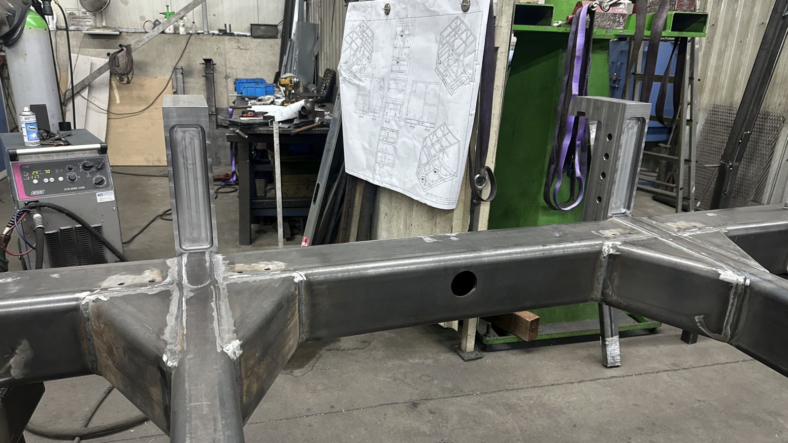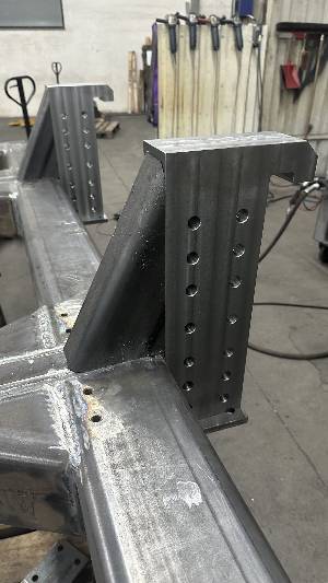 Die letzten Schweissarbeiten am Grundrahmen nehmen wir in Angriff. Das heisst, an den Kupplungselementen werden die Fasen für die Schweissnaht angeschliffen, und anschliessend werden die Kupplungselemente und die Spickel verschweisst und dann ab zum Spannungsfreiglühen.