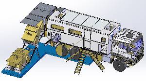 Diese Entscheidung hat Folgen für uns, die Windgeneratoren werden demontiert, der Kran eliminiert und die Ersatzräder werden unter der Quadbox montiert. Der Zwischenrahmen wird hinten mehr belastet, was natürlich nachgerechnet werden muss. Die Tragfähigkeit der Hydraulik muss auch überarbeitet, zumindest geprüft werden und etwaige Einstellungen korrigiert werden. Die Quadbox muss konstruiert, berechnet, anschliessend gefertigt, lackiert und Fahrzeugtechnisch Vorschriftsgemäss elektrisch verdrahtet werden. Eine Vorführung beim Strassenverkehrsamt ist nicht nötig weil es Fracht ist und Vorschriftsgemäss demontiert werden kann. Diese Anpassung mit der Quadbox verlängert die Bohnemoni um 1'237 mm!