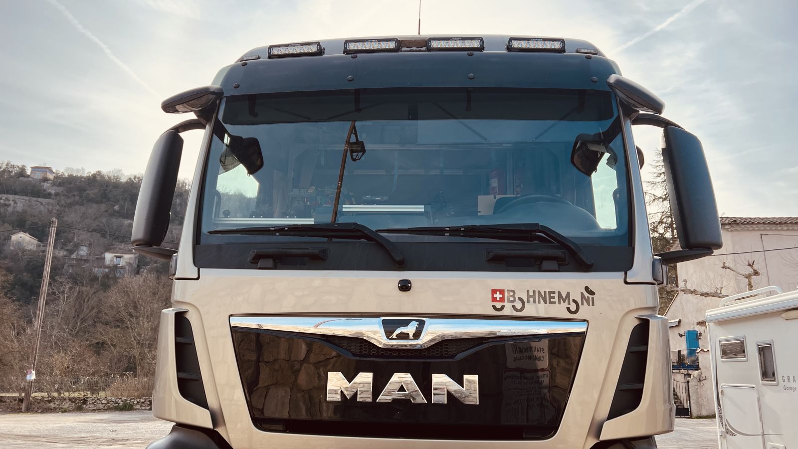 Die Strassen in Thézan lés Béziers wurden eng und enger bis beinahe nichts mehr ging, die Strasse durch das Dorf ist zugelassen für unsere Abmessungen und Tonnage, wir haben uns also nicht verfahren. Erst marschierte ich die enge Passage zu Fuss ab um sicher zu sein, dass es nicht noch enger wird, nicht alle Chauffeure hatten Freude an mir, war mir aber egal. Nach dem wir die grossen Ohren (Spiegel) eingeklappt hatten ging es mehrheitlich im Blindflug durch die engen Gassen.