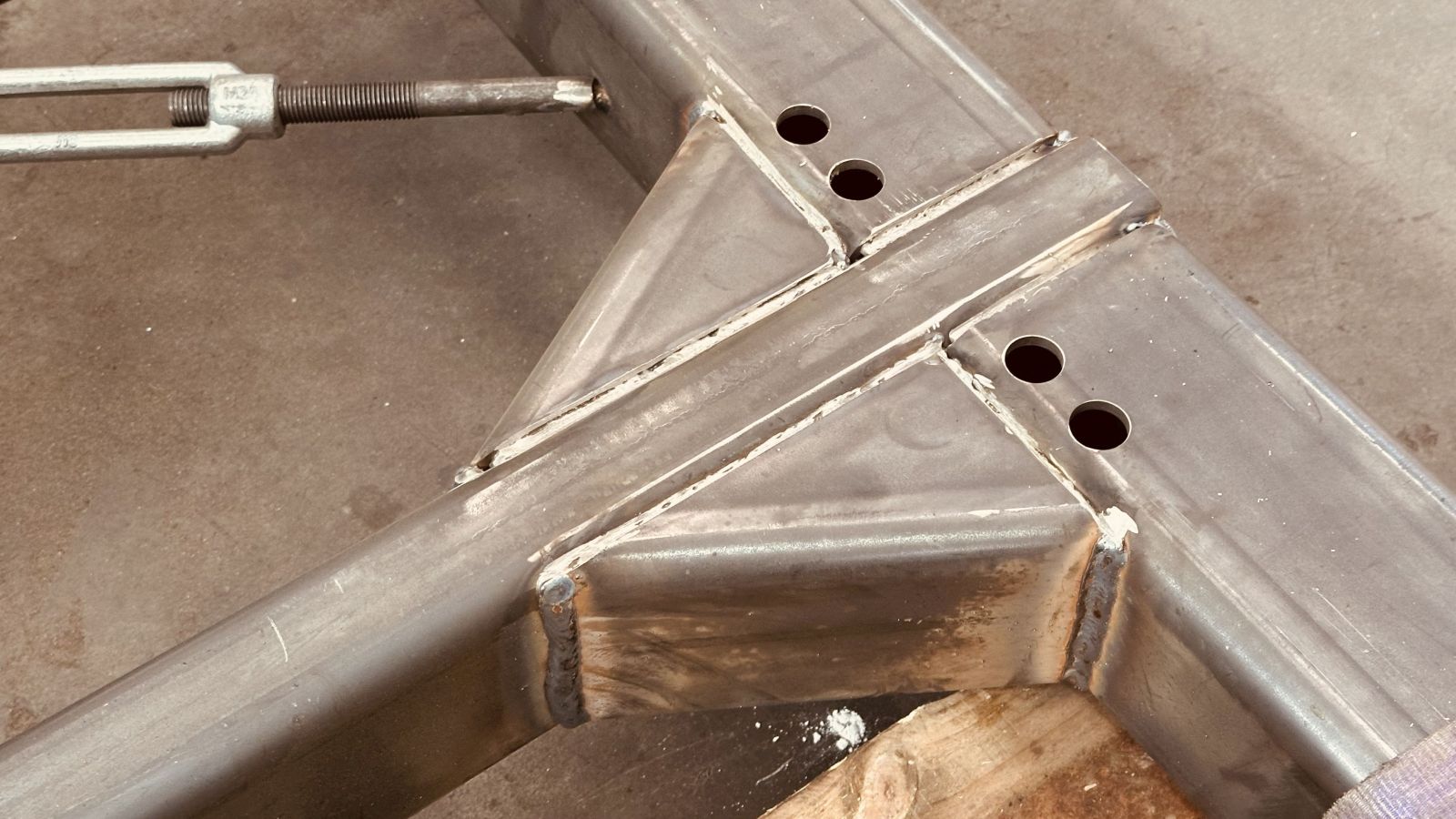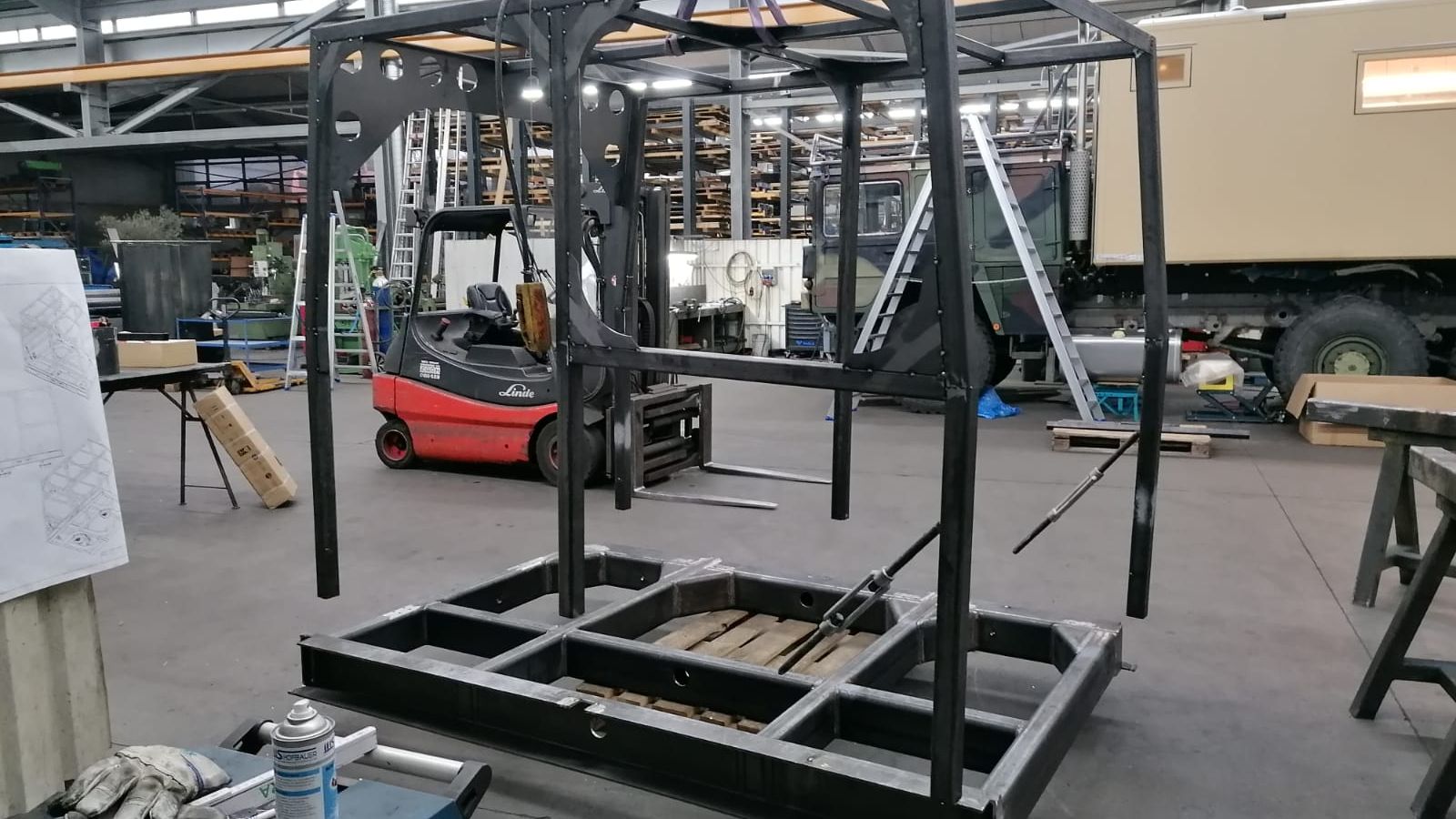 Wenn der Grundrahmen nach dem glühen retour kommt, wird das Oberteil mit dem Grundrahmen zusammengefügt und verschweisst.