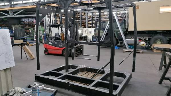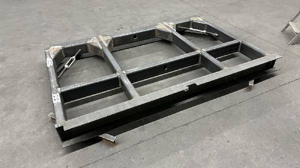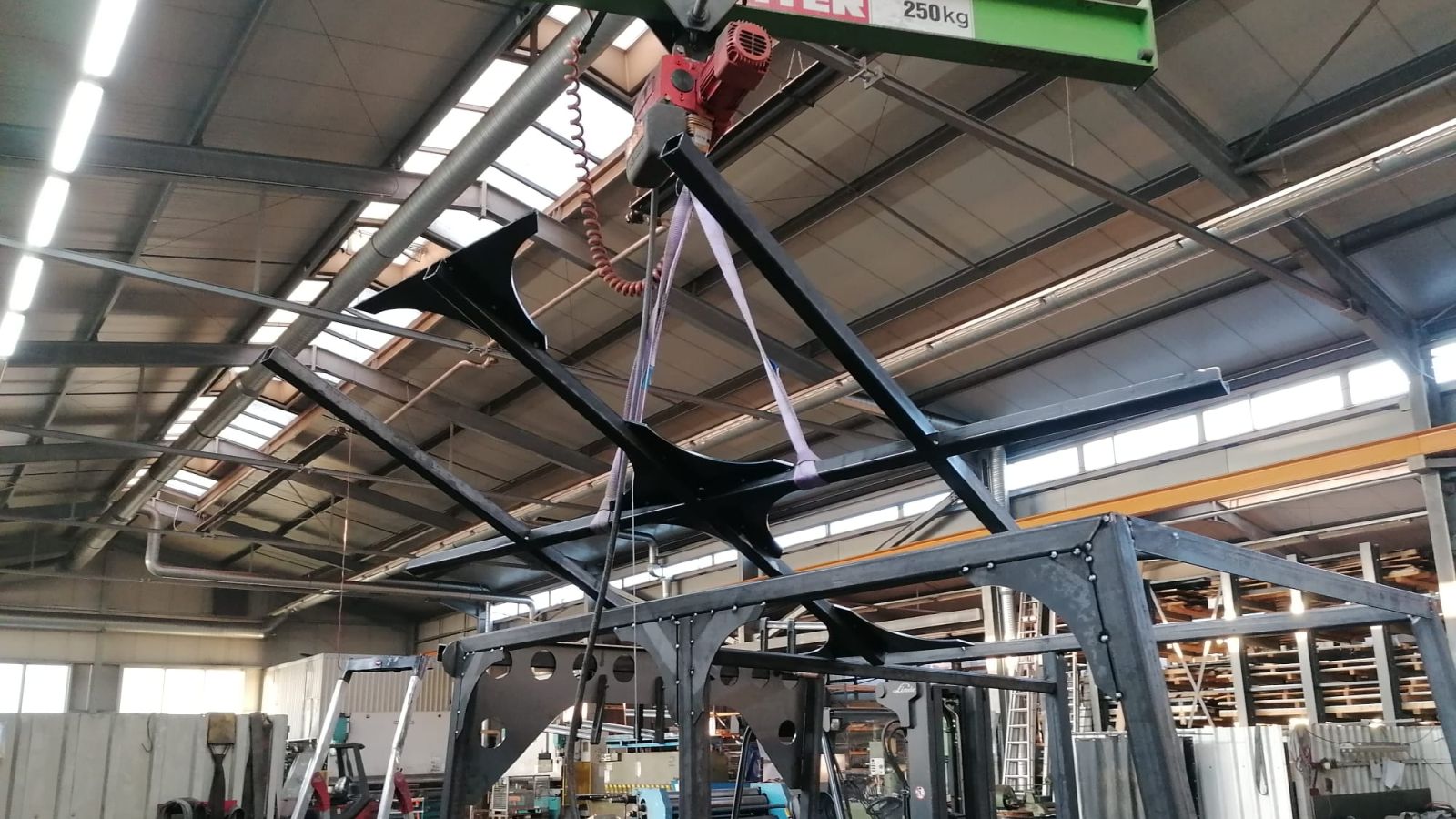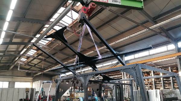 Sobald die Kupplungsteile geheftet sind wird am Grundrahmen alles verschweisst, anschliessend wird der Grundrahmen zum Spannungsfreiglühen gebracht. Während dem werden am Oberteil die fehlenden Teile angebracht und dann fertig geschweisst.