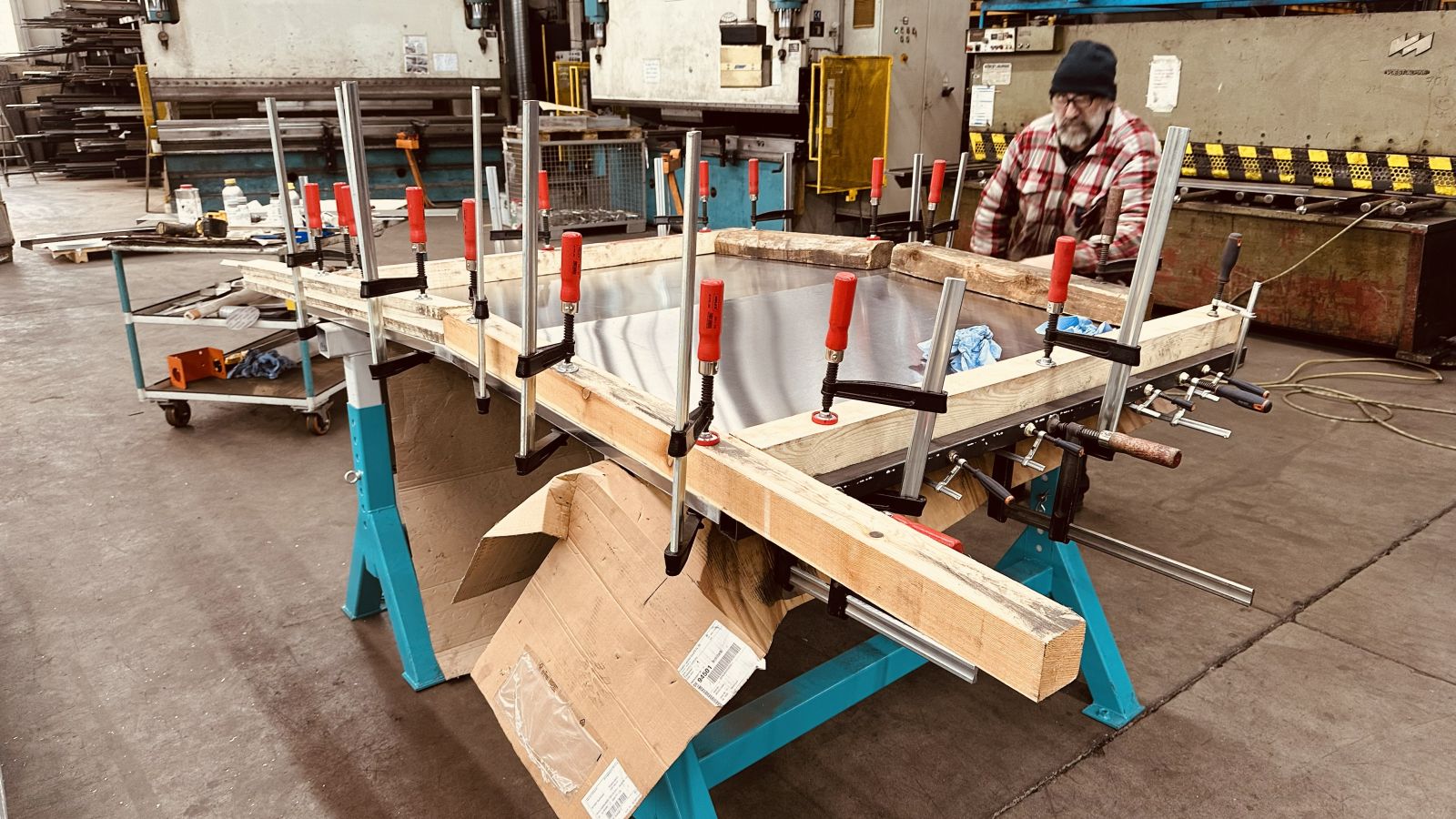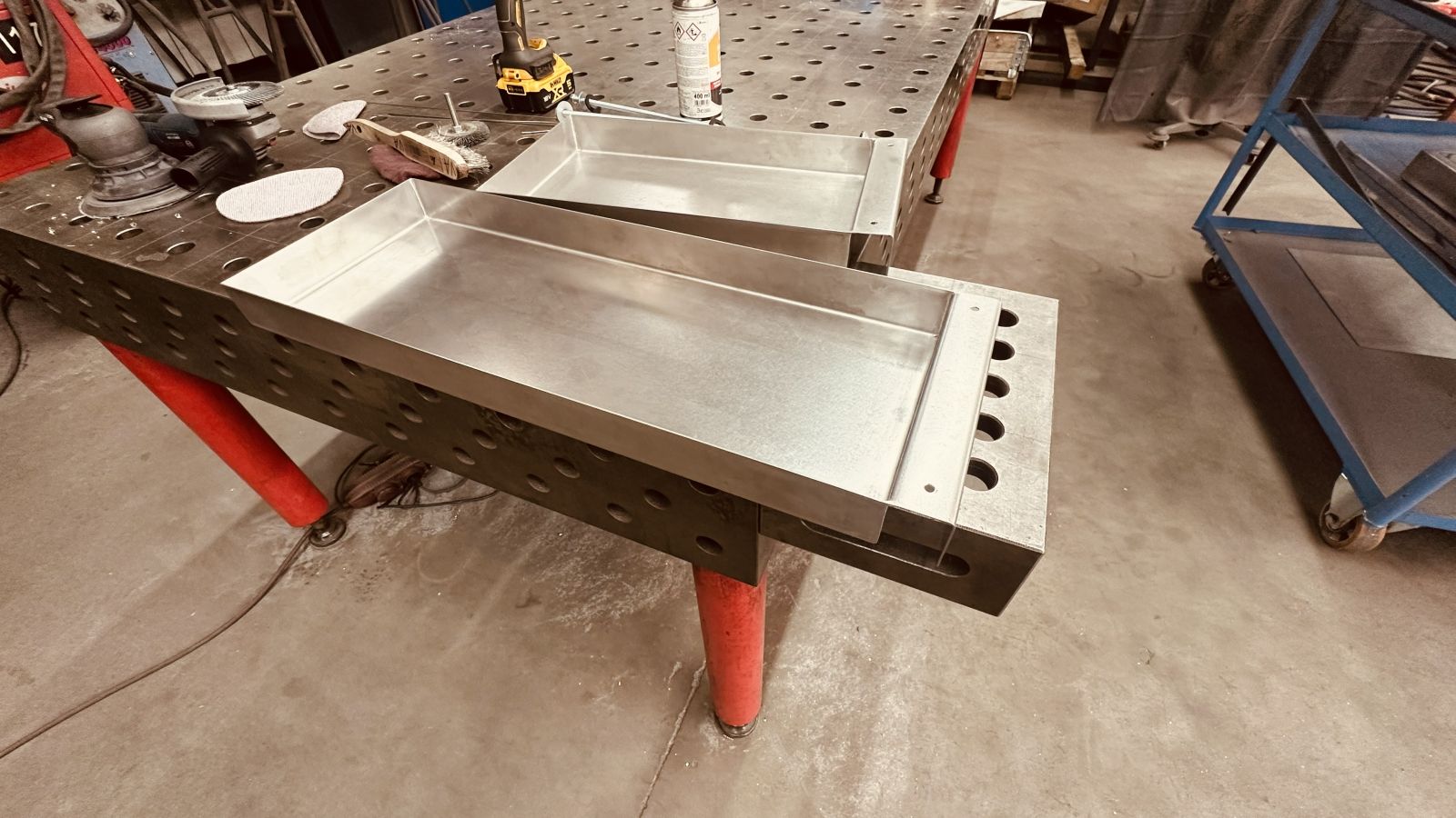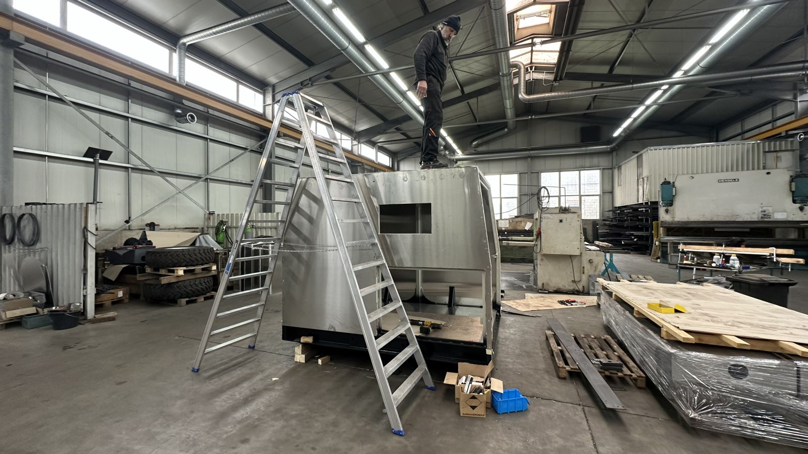 - Unglaublich: Wir können die Quad Box wieder nicht beplanken, es ist zwar alles vorbereitet, schon primer aufgetragen aber eben! Ein Externer hat den Primer und den Aktivator beinahe geleert und nur hingestellt ohne was zu sagen! Wie sagt man denn der zuvorkommenden Freundlichkeit? Es muss neues Material bestellt werden und wir warten wieder, den letzten beissen die Hunde!