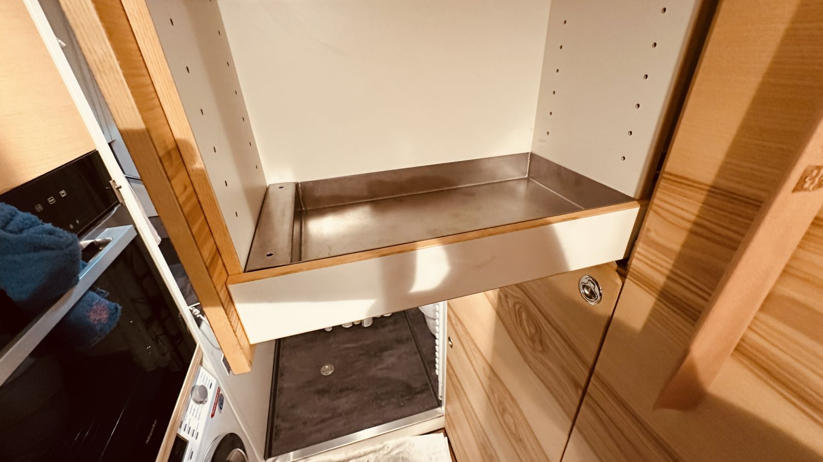 - Die Blechwannen sind in den Apothekerschränke eingesetzt, passen wunderbar.