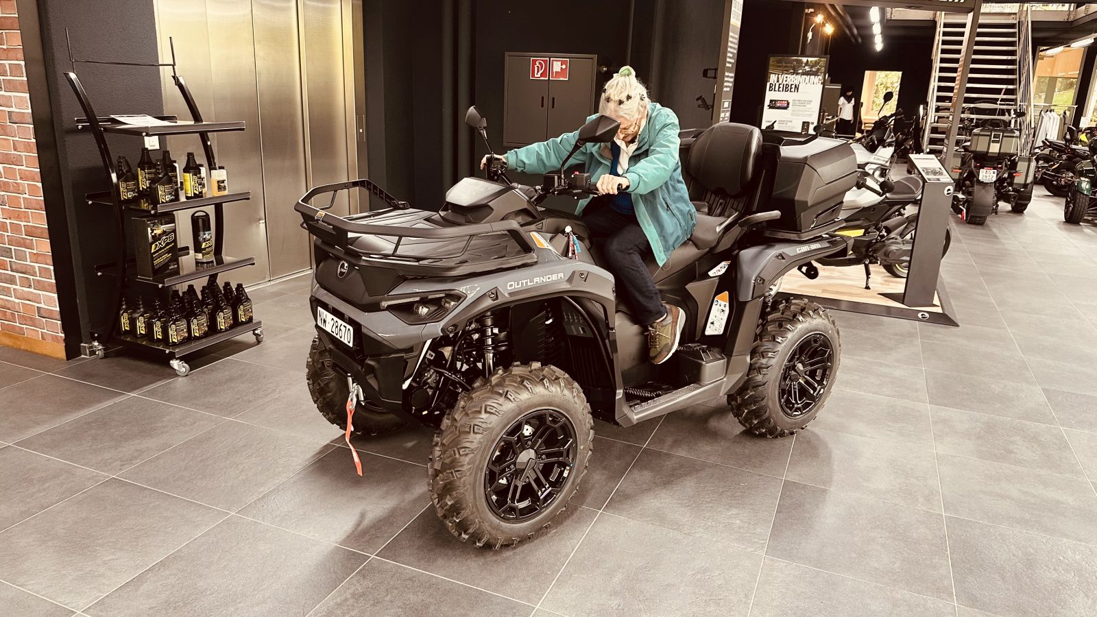Heute war ein sehr guter Tag, wir haben den Quad abgenommen, er wird nächste Woche zum Hersteller der Quad Box geliefert, Region Passau (D). Circa in einem Monat wird er mehr oder weniger selbstständig raus aus der Quad Box und wieder rein in die Box fahren. Wir freuen uns jetzt schon auf die ersten Ausfahrten mit dem Quad. Auf ihm fühlt sich Moni sichtlich wohler, die Füsse reichen bis zum Trittbrett und oben sieht sie ohne Hindernis in die Welt hinaus, Toll!