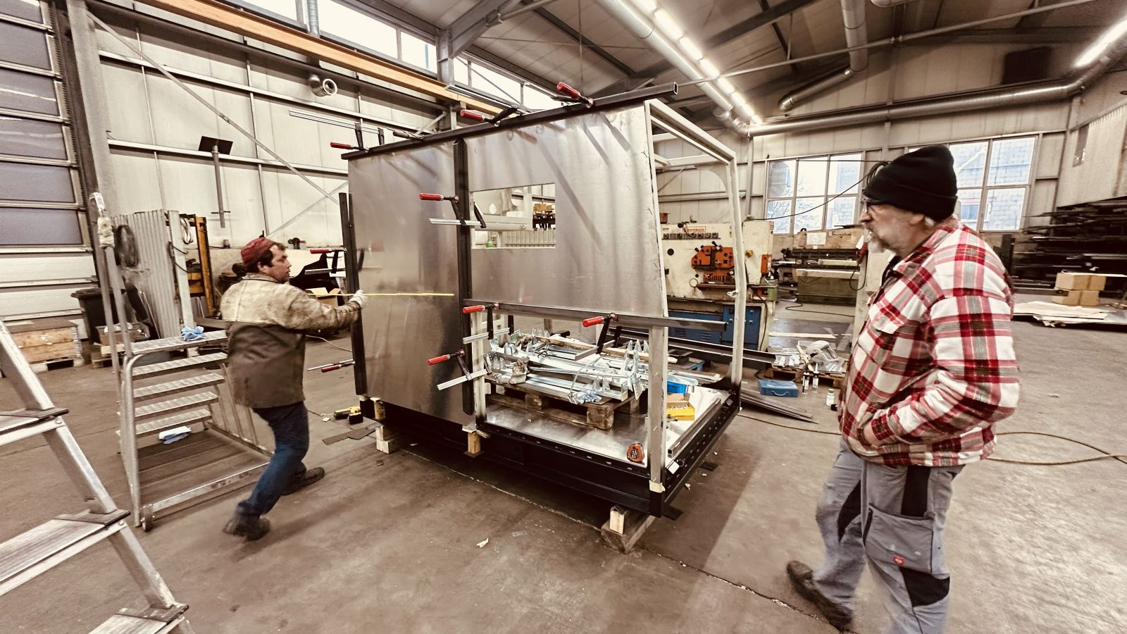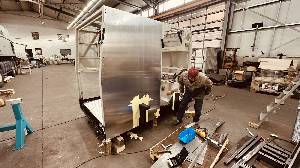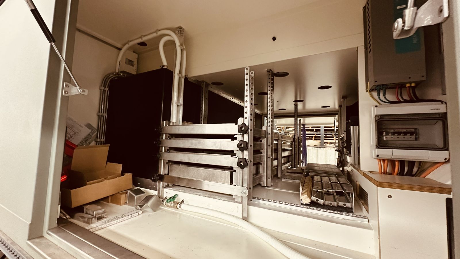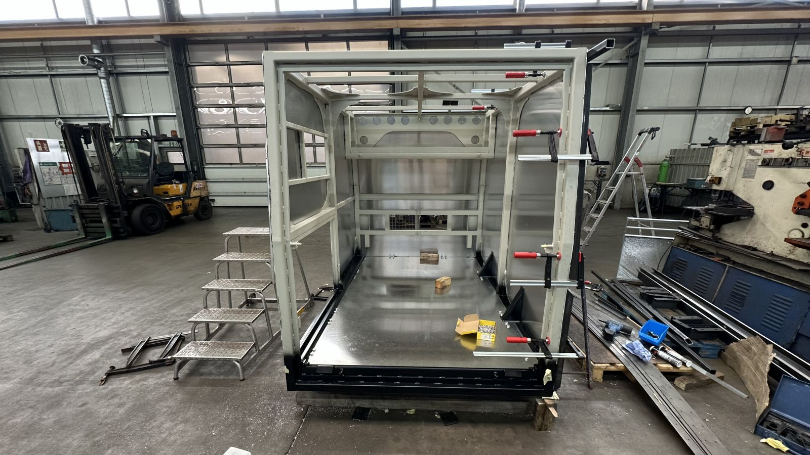 Der Aluminium Boden ist schon montiert, nun kommen die Aluminium Wände an die Reihe