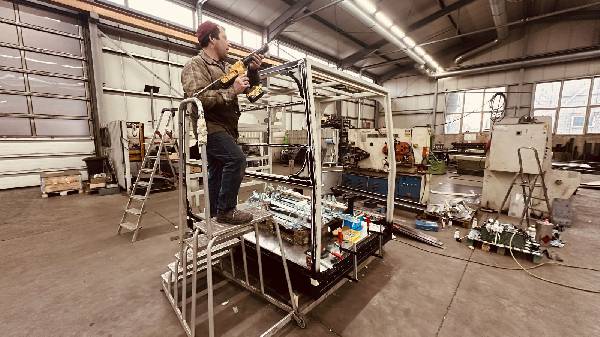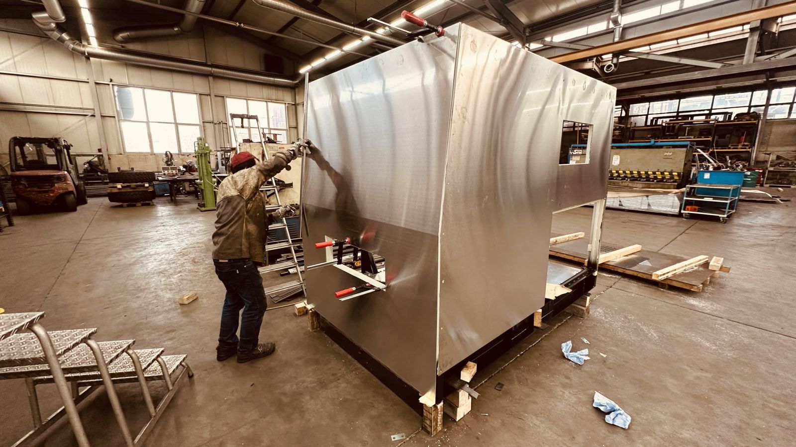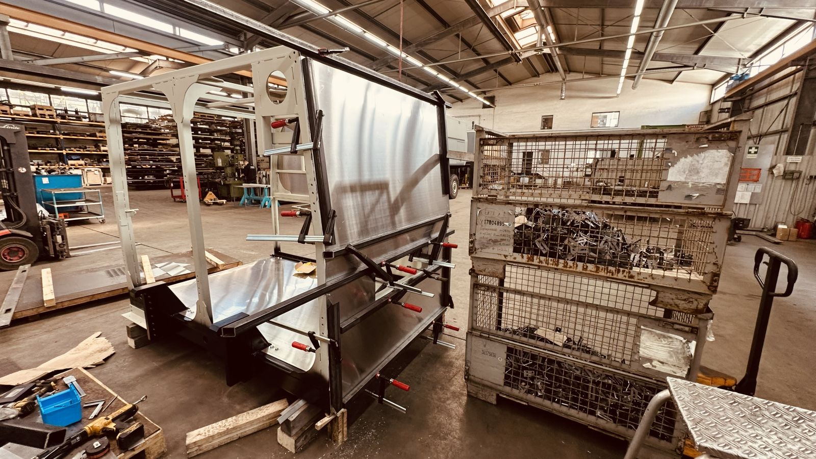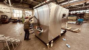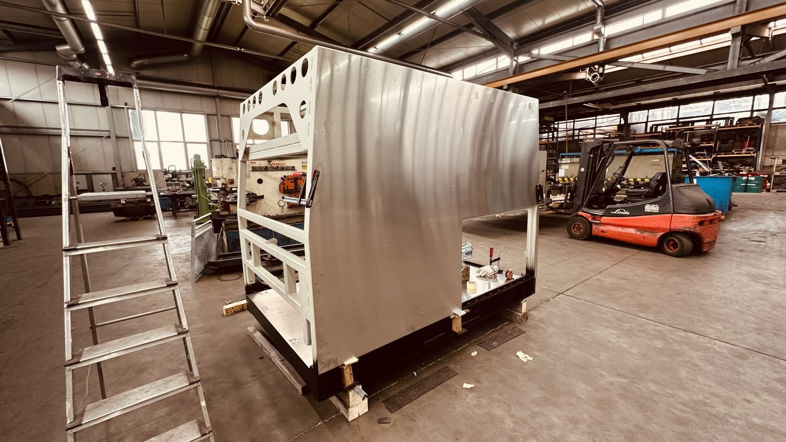 Der Aluminium Boden ist schon montiert, nun kommen die Aluminium Wände an die Reihe