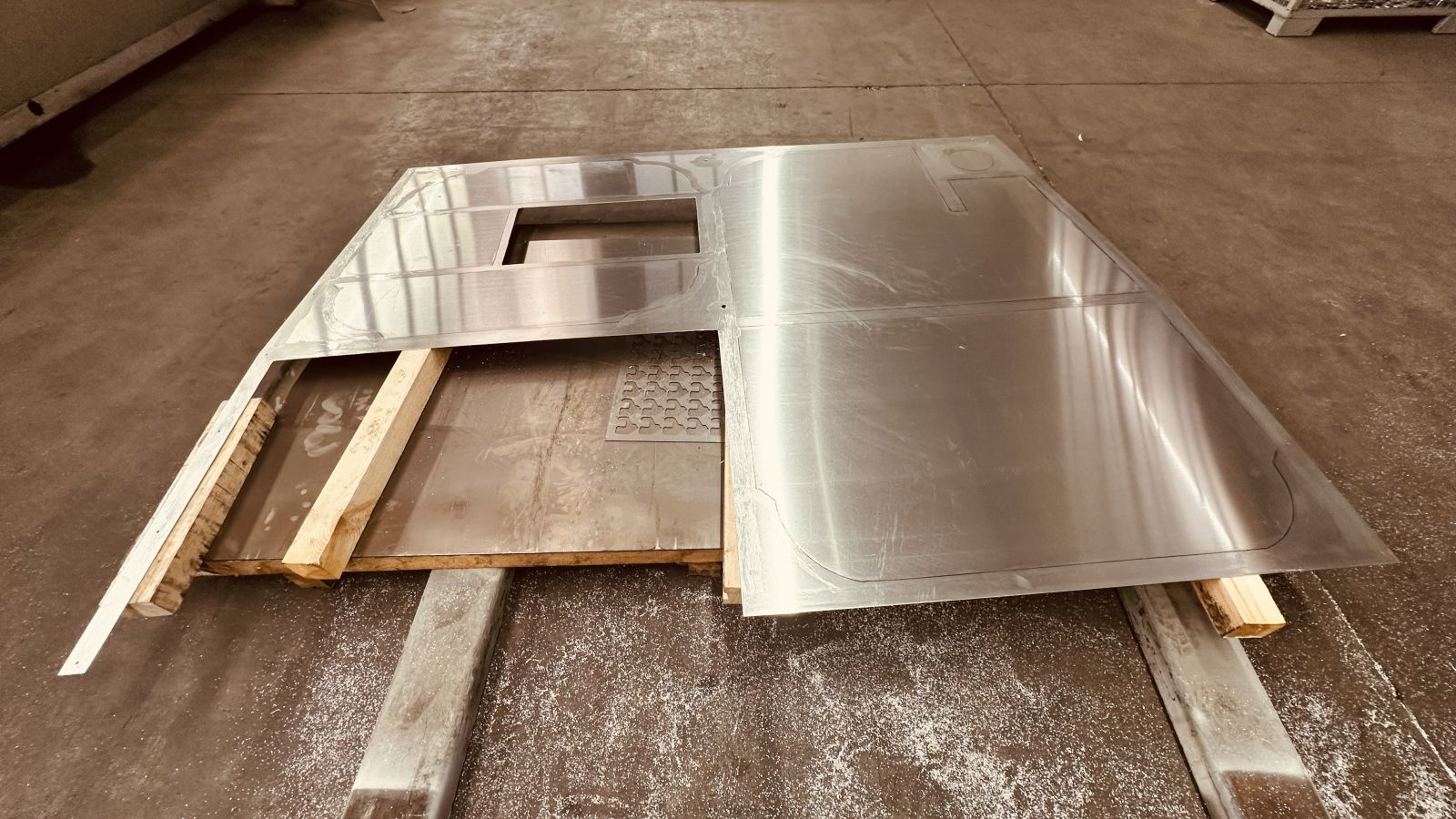 - Die beiden Klappen werden ebenso mit 2 mm Aluminium beplankt, abgedichtet und vernietet / verklebt