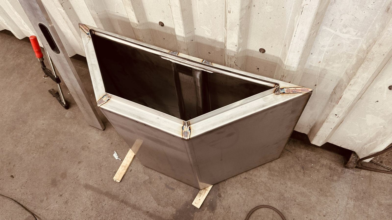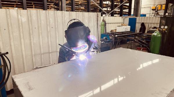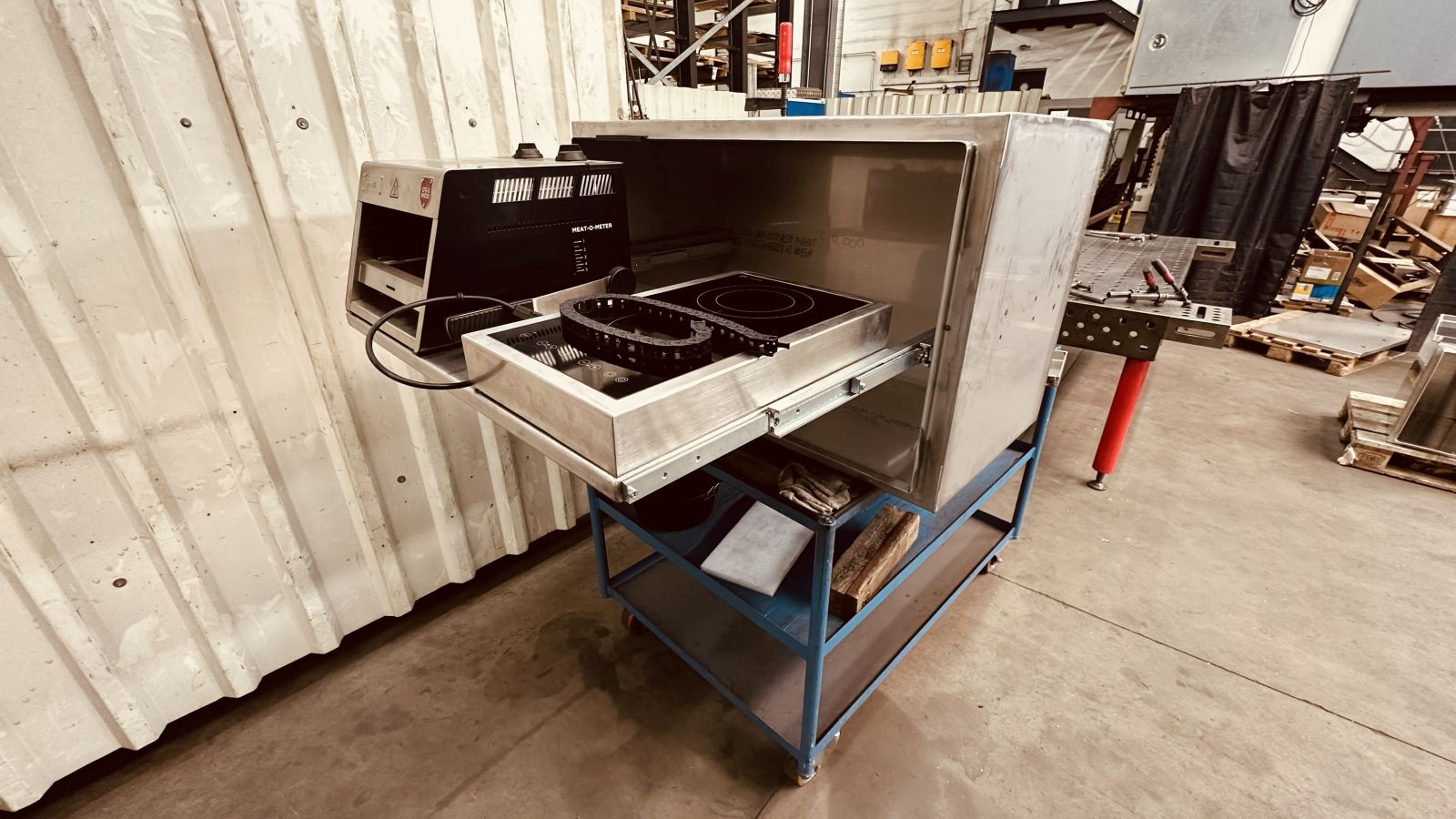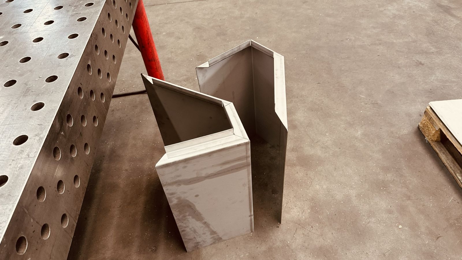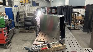 - Die letzten sechs Aluminium Stauboxen zwischen Wohnkabine und Quad Box sind beim abkanten und schweissen.
